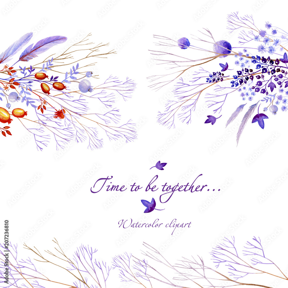 Lilac Watercolor Natural Postcard With Horizontal Elements Natural Cliparts For Wedding Design Artistic Creation Stock Illustration Adobe Stock