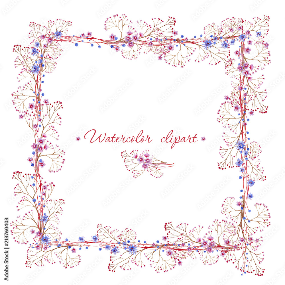 Floral Square Blue And Pink Frame Witn Bpanches Cliparts For Wedding Design Artistic Creation Stock Illustration Adobe Stock